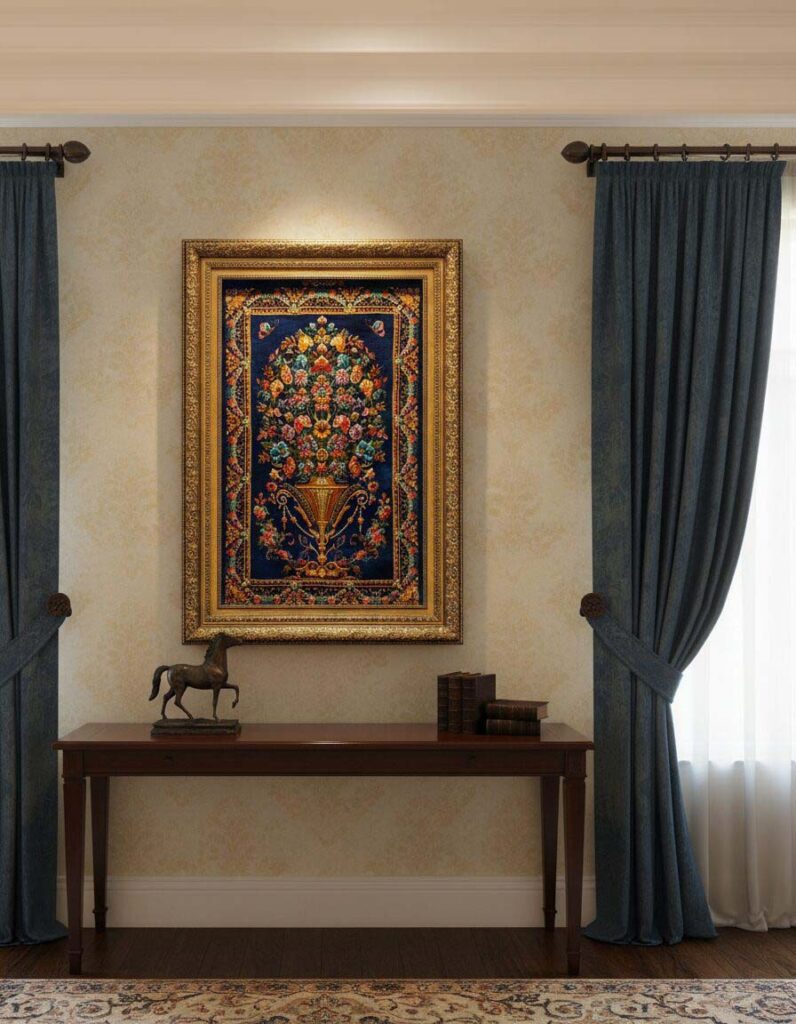 تابلو فرش ابریشم لاجوردی