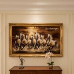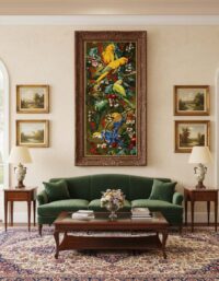 قاب طلایی پرکار این تابلو، زیبایی اثر را دوچندان کرده و آن را به گزینهای ممتاز برای دکوراسیونهای کلاسیک و لوکس تبدیل نموده است.